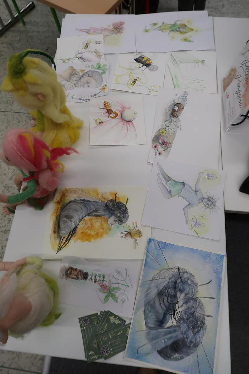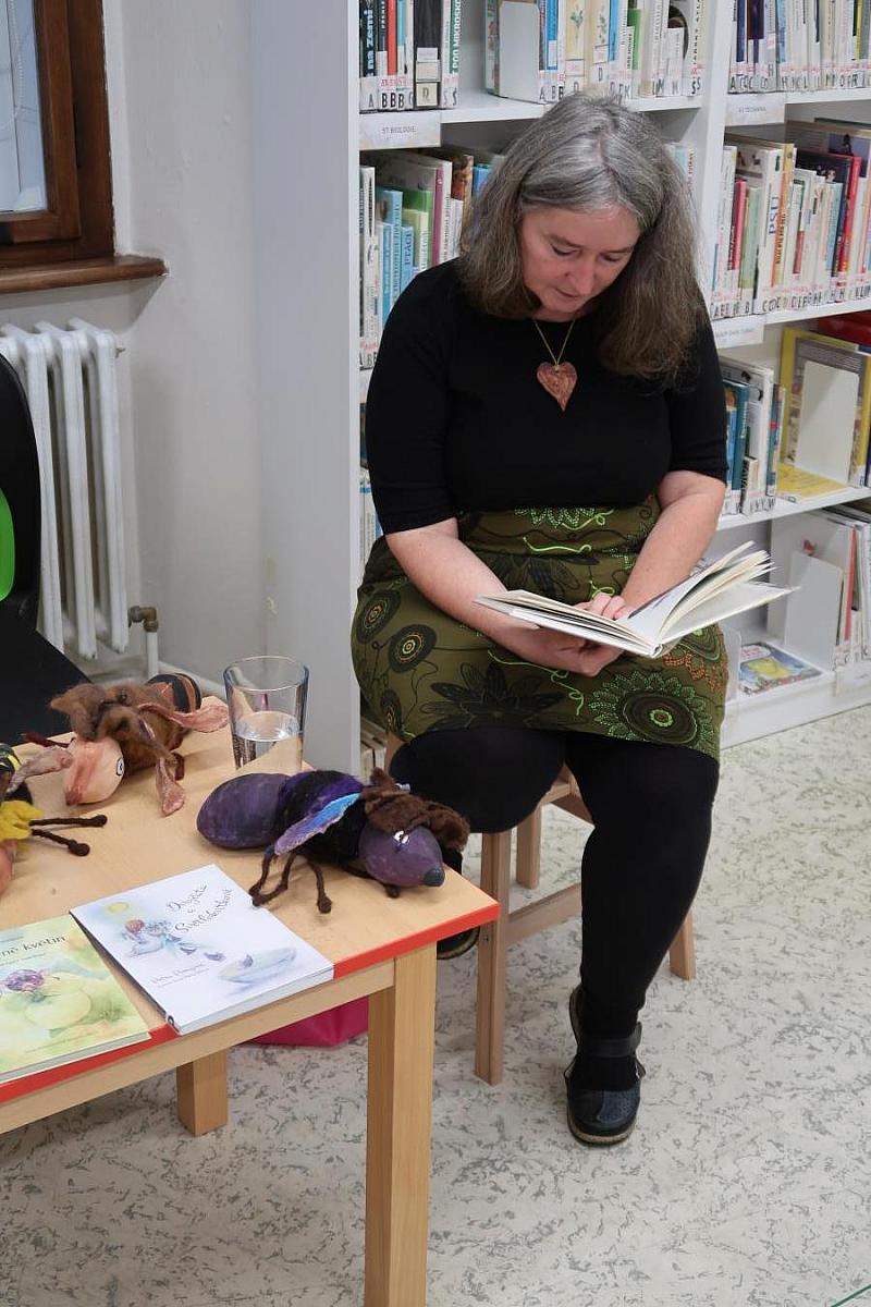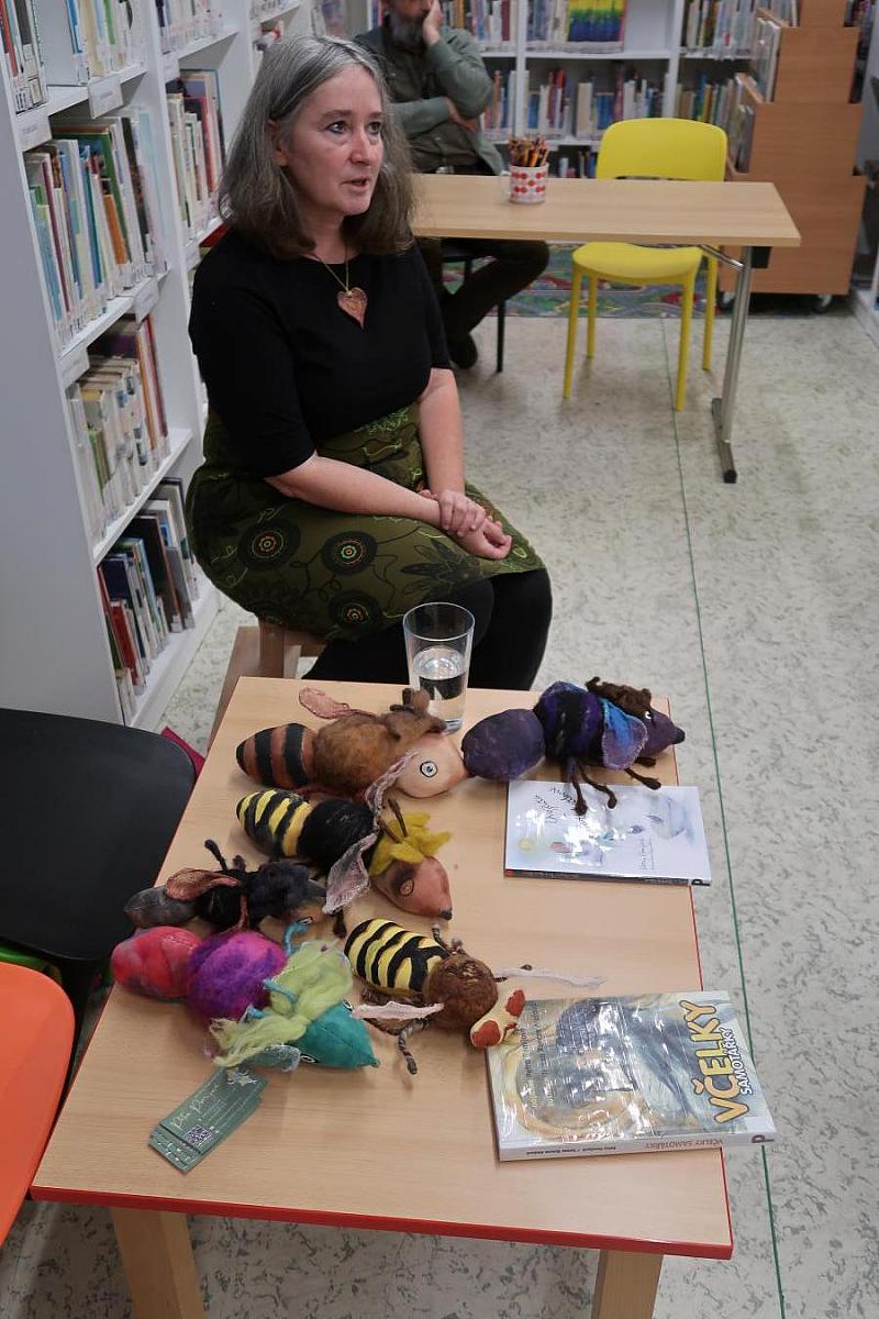 Součástí programu bylo také autorské čtení z jejích tří knih, které děti zaujalo svou hravostí, poetickým jazykem i laskavým humorem. Paní Pomijová navíc přinesla ilustrace z knih, které si děti mohly zblízka prohlédnout, a také krásné loutky postaviček, které sama vyrábí. Ty dodaly celému setkání osobité kouzlo a pomohly dětem oživit svět hmyzích hrdinů, o nichž autorka píše.