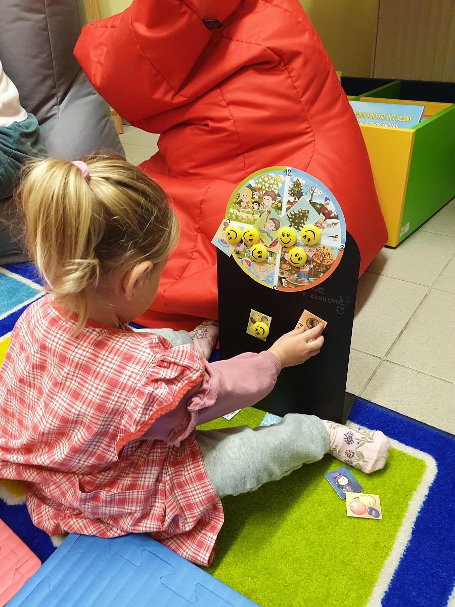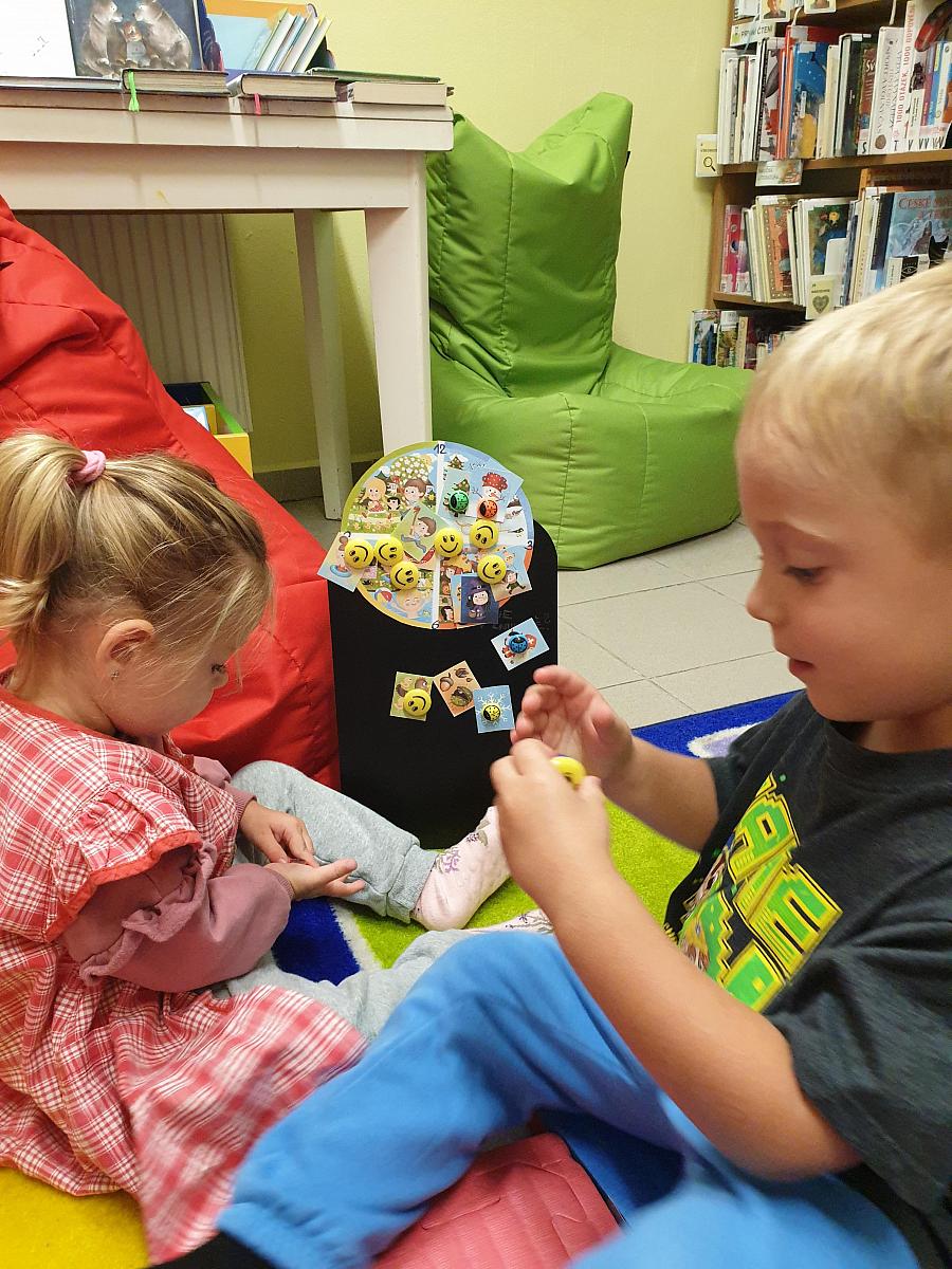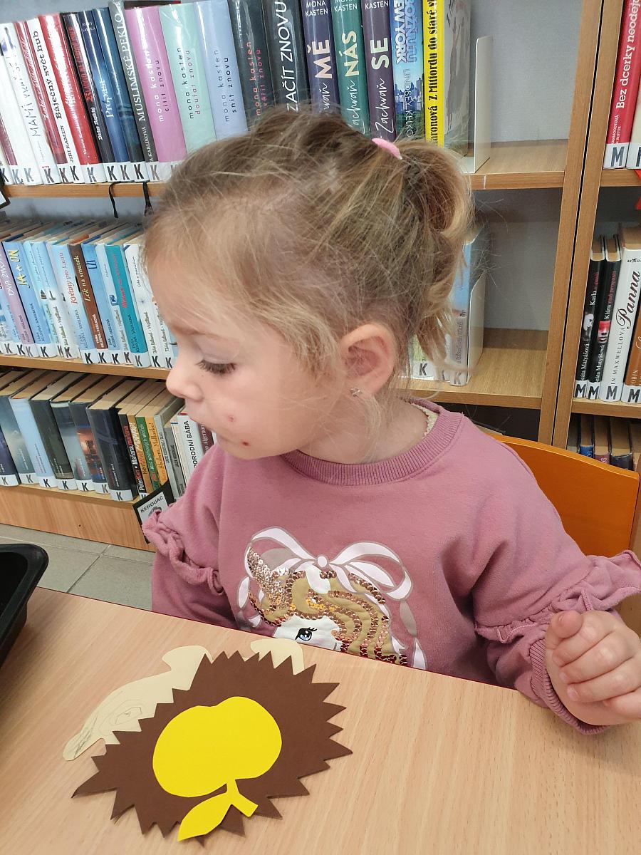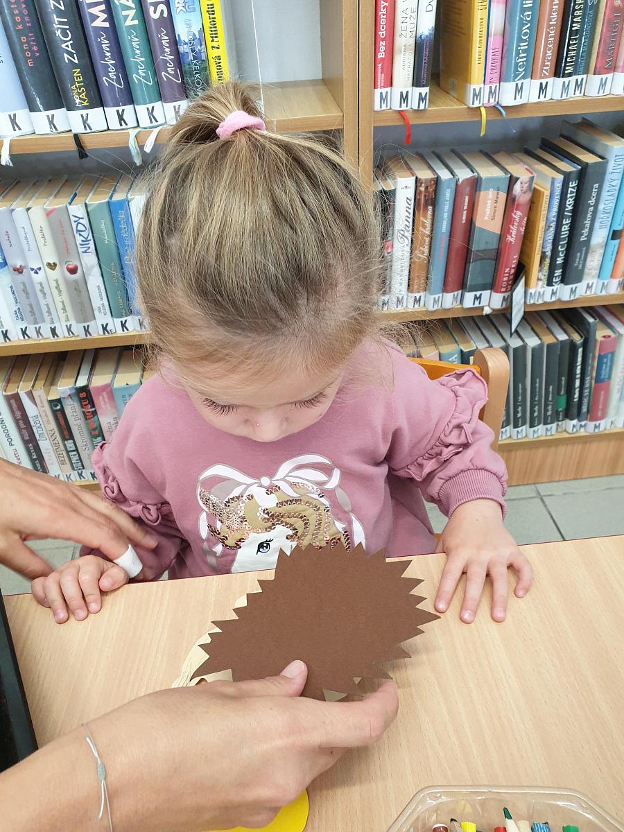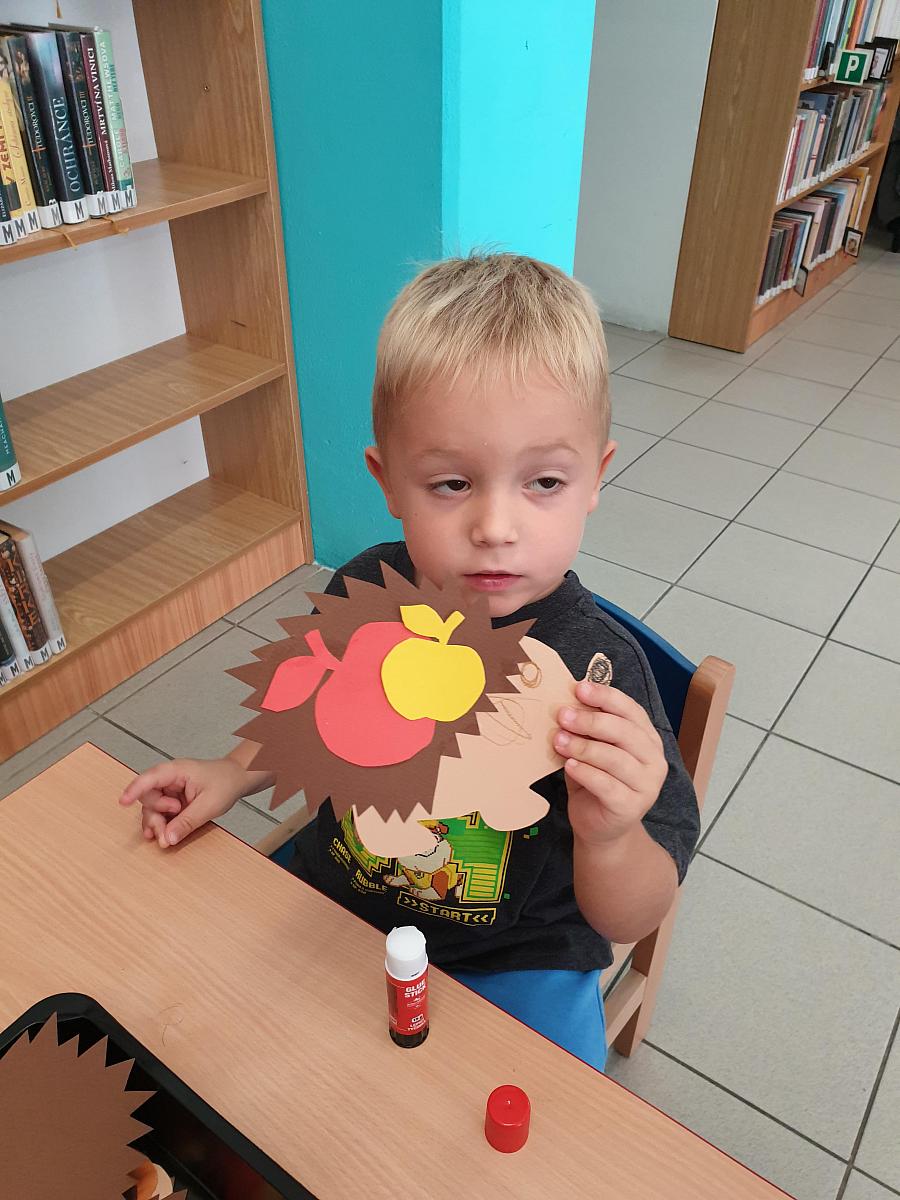V pondělí 8. 9. 2025 přišly děti z DS Střapatá smečka na pobočku Mír, abychom si společně zahráli pohádku O veliké řepě. Každý měl svou roli a té se všichni zhostlili na výbornou. Řekli jsem si něco o podzimu, děti přiřazovaly kartičky k ročním obdobím a prohlédly si knížky pro nejmenší čtenáře. Na závěr návštěvy si každý slepil a namaloval několik ježečků a někteří budou zbobit knihovnu.
