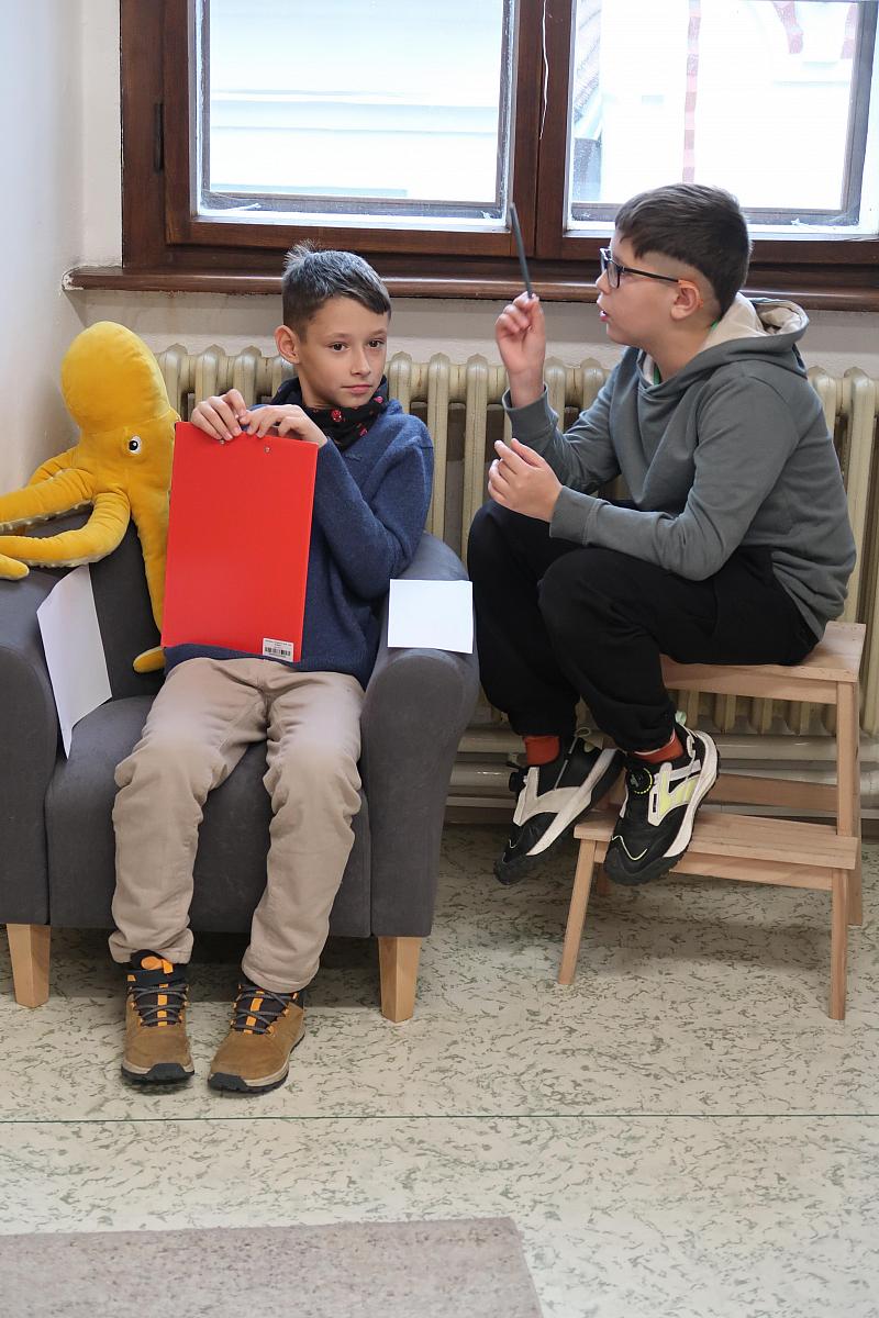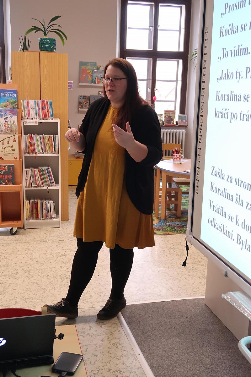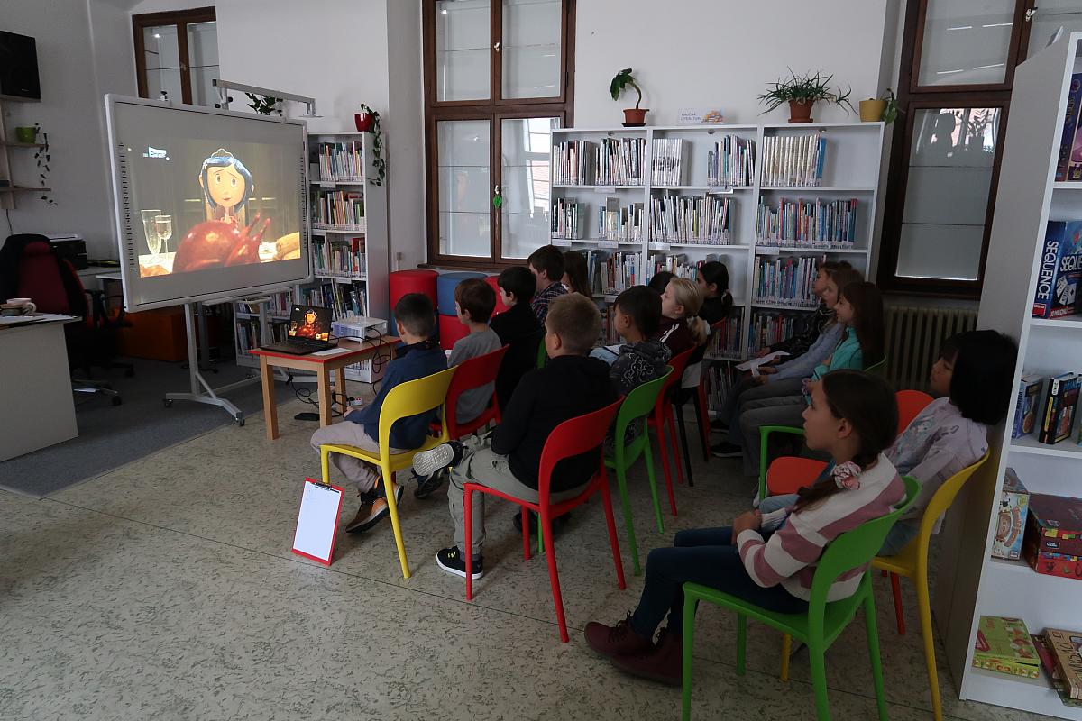 Na první setkání dorazili páťáci ze ZŠ Linecká, na druhé sedmáci ze ZŠ Křemže. Oba programy měly společného ducha napětí i zvídavosti. Povídali jsme si o hororových příbězích, které umí pořádně zamrazit, a pak jsme se pustili do samotné Koraliny.