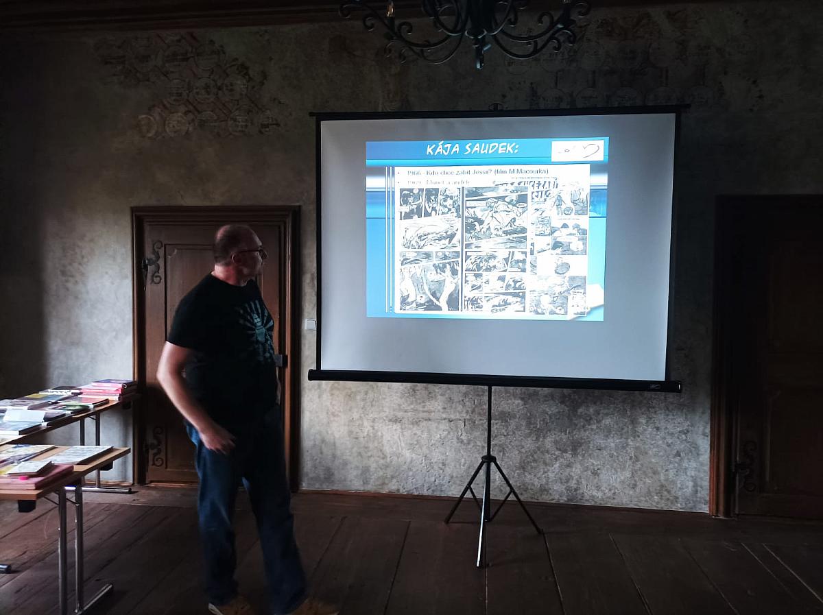 Ve středu 15. 4. v podvečer jsme se v Gotickém sále knihovny společně s českokrumlovským psychiatrem Martinem Kozákem opět ponořili do světa komiksu – tentokrát našeho českého a slovenského.