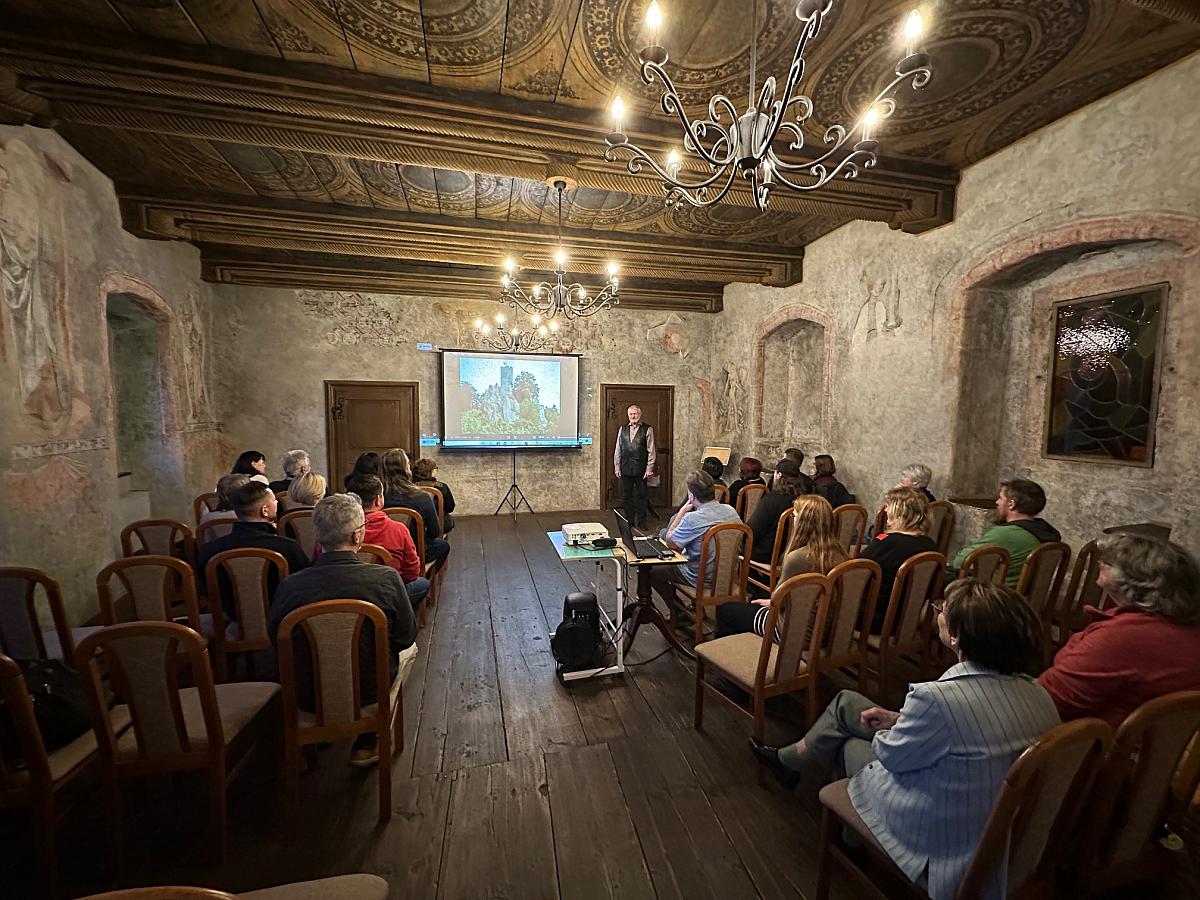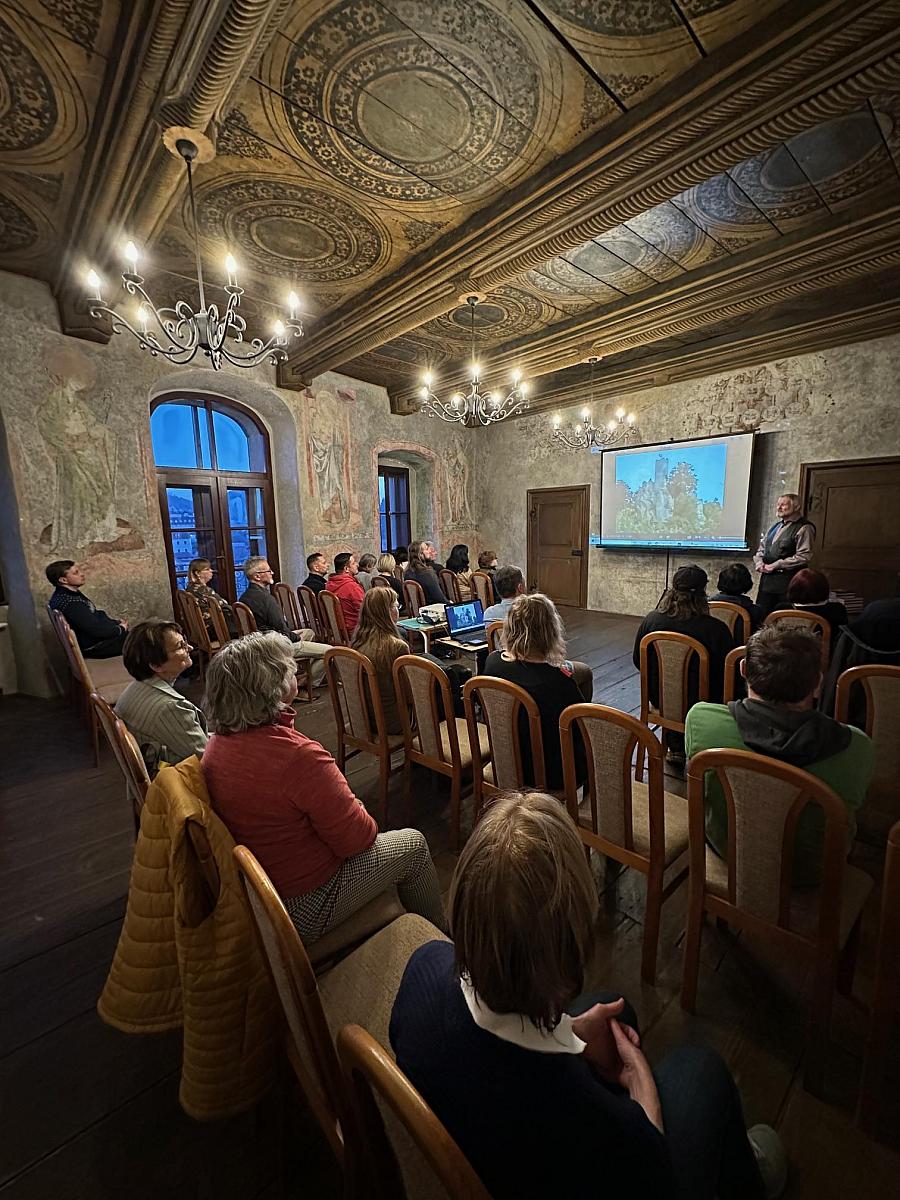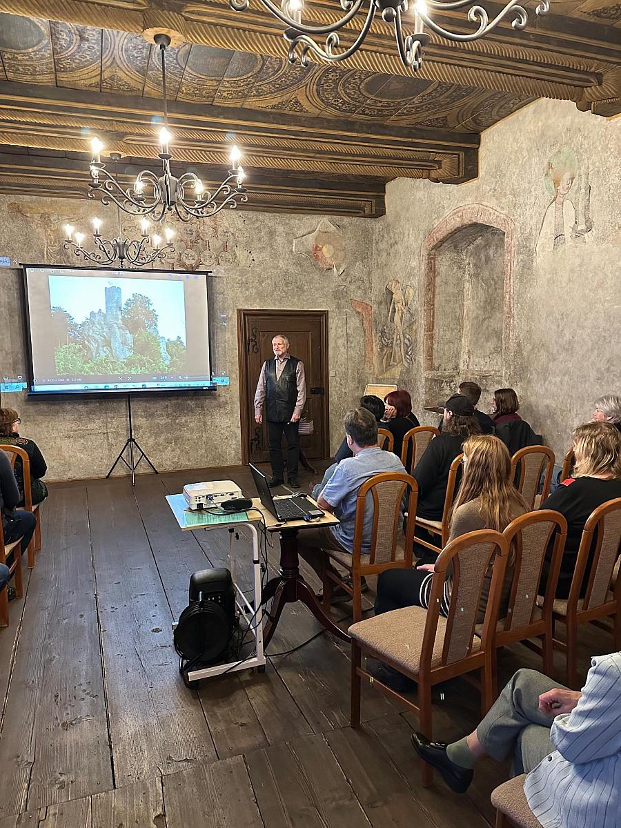 Přednáška byla zároveň pozvánkou na velkou výstavu evropských hradů, která se uskuteční příští rok na Pořešíně a na Tiché.