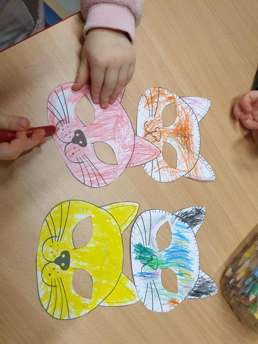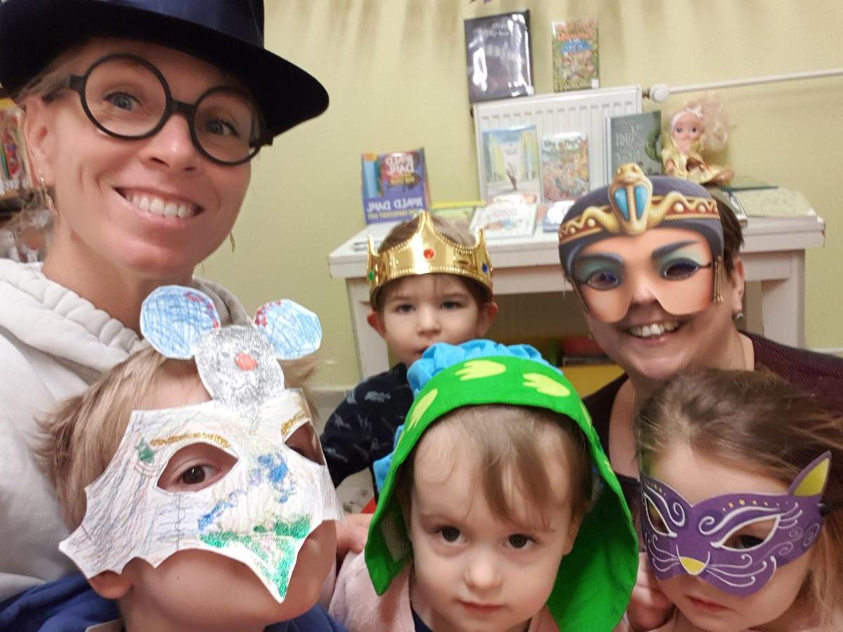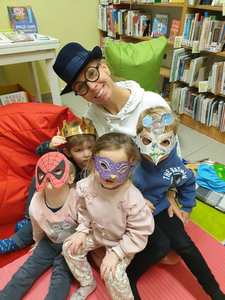V pondělí 2. února přišly děti z Dětské skupiny Střapatá smečka a společněi jsme si přečetli pohádku O koblížkovi, povídali si o tom, jak se slaví masopust a jak vlastně vzniklo slovo masopust. Vyzkoušeli jsme si spoustu masek, splnili zábavné úkoly – hopkali jsme jako zajíčci, protahovali se jako kočičky a pořádně se u toho rozhýbali.