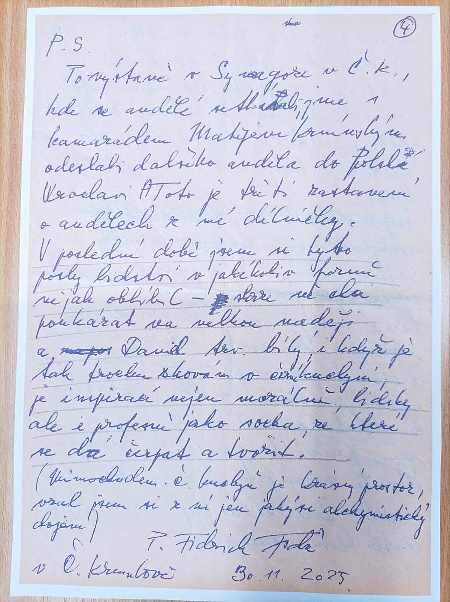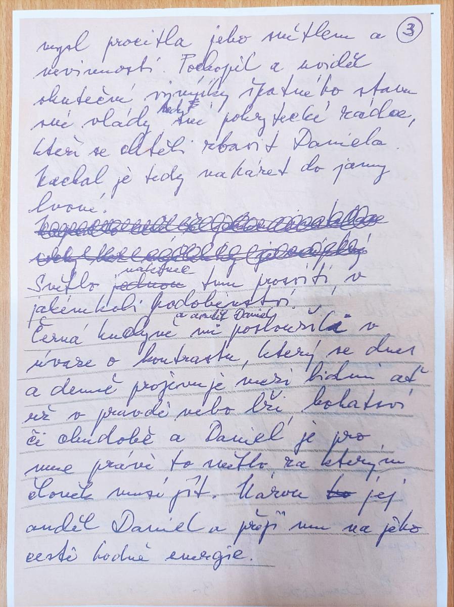 … „V poslední době jsem si tyto posly lidskosti v jakékoliv formě nějak oblíbil – skrze ně chci poukázat na velkou naději a David tzv. bílý, i když je tak trochu schován v černé kuchyni, je inspirací nejen morálně, lidsky, ale i profesně jako socha, ze které se dá čerpat a tvořit.“ …