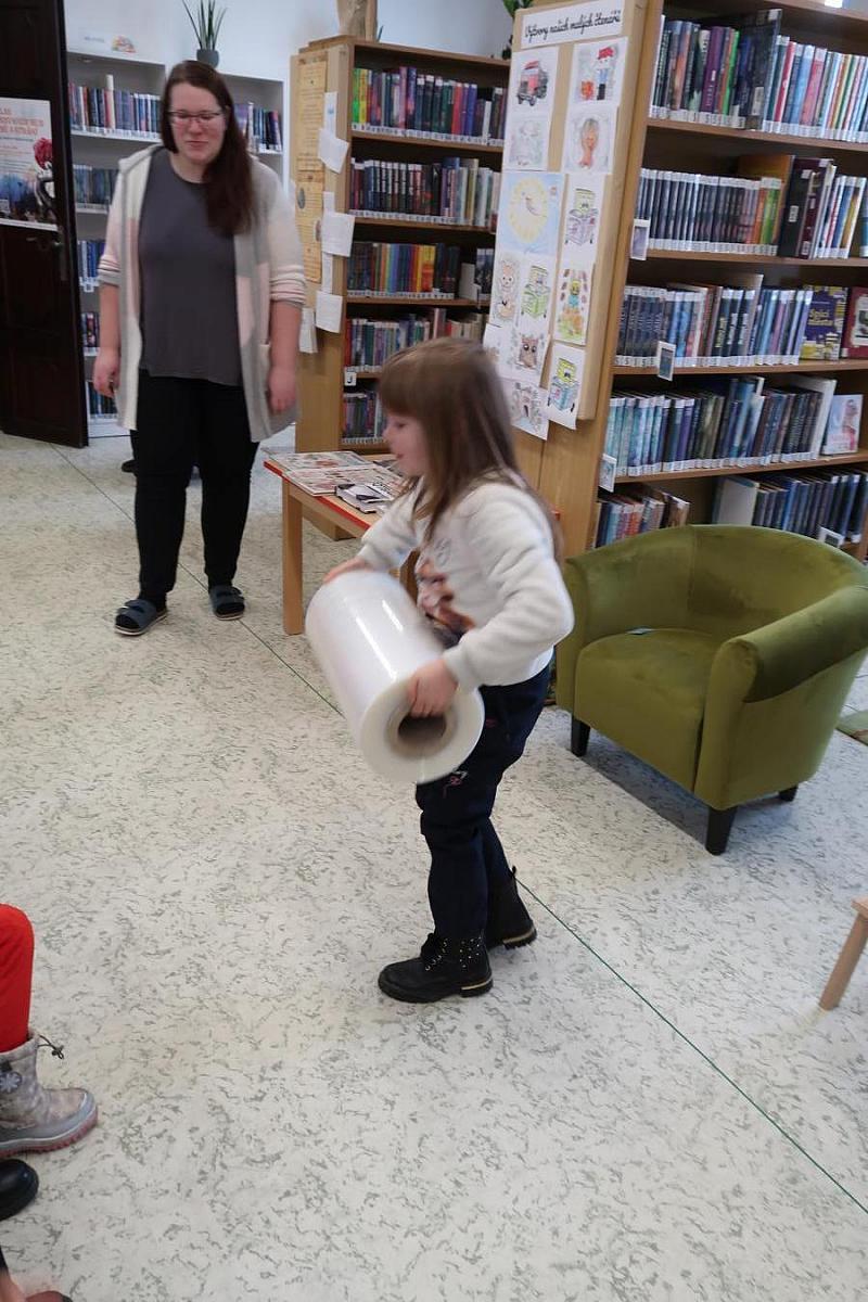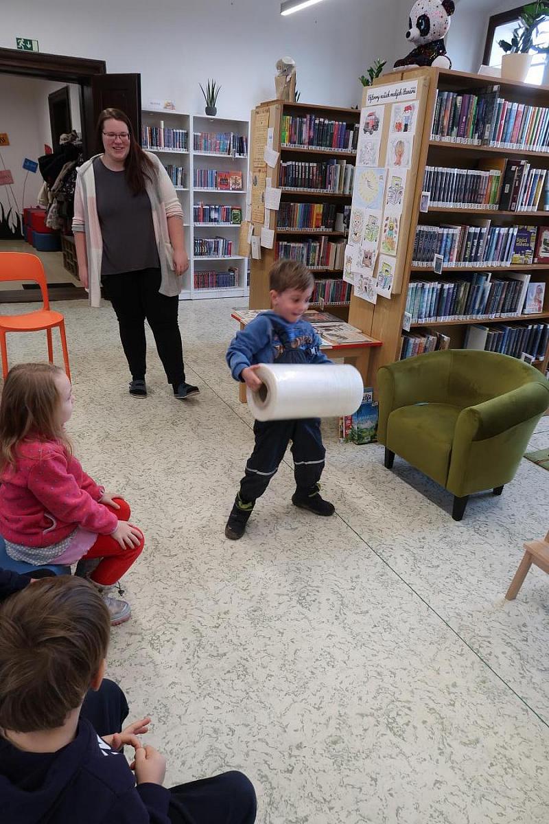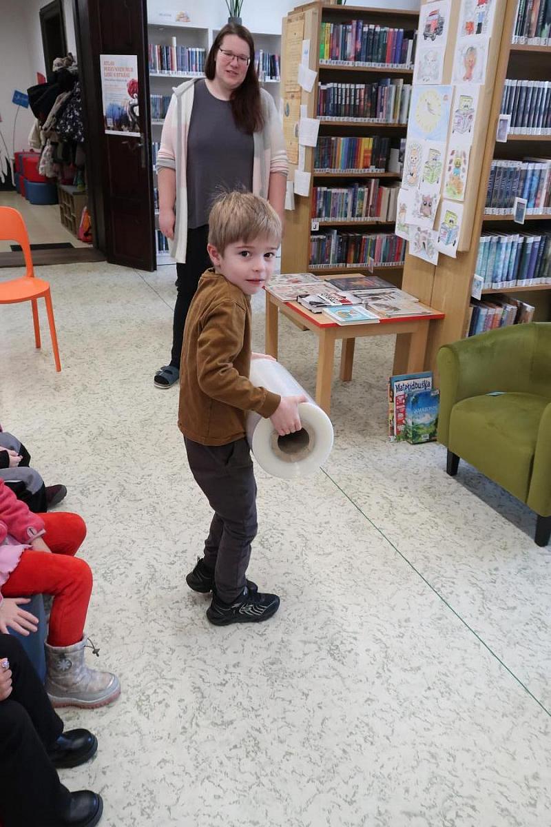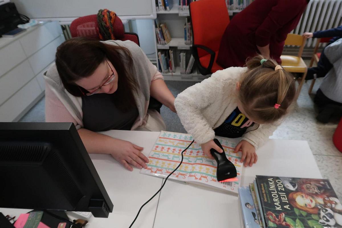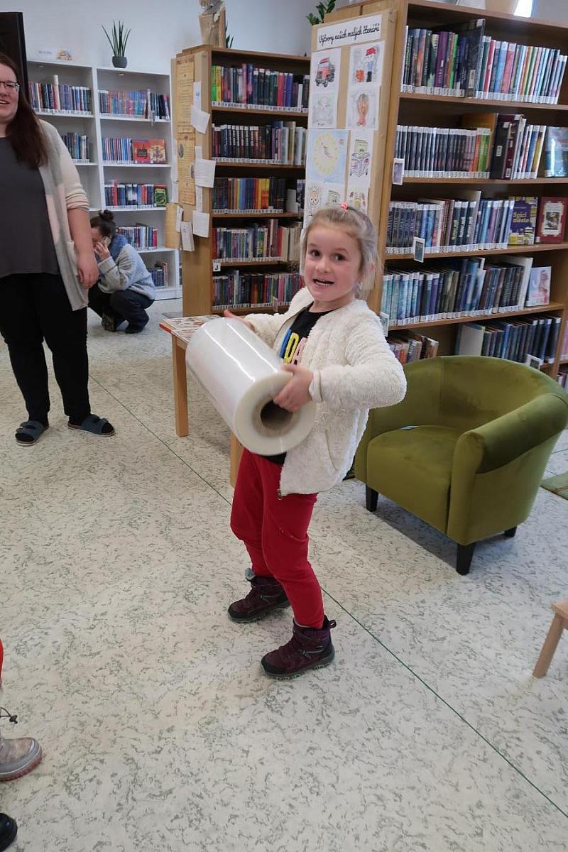 Děti si také připomněly, jak se o knížky správně starat, aby nám vydržely co nejdéle a mohly rozdávat radost dalším čtenářům. Na závěr si všichni vyzkoušeli práci knihovníka: zvedli těžkou roli obalovací fólie a každý si načetl svou knížku pomocí scanneru. Pro mnohé to byl úplně první kontakt s knihovnou.