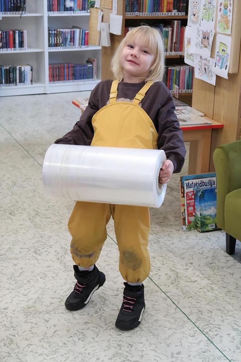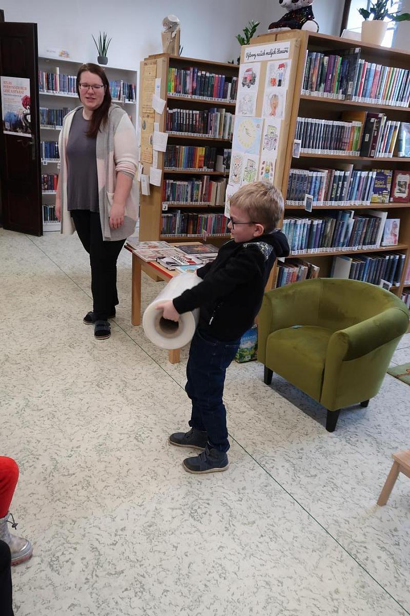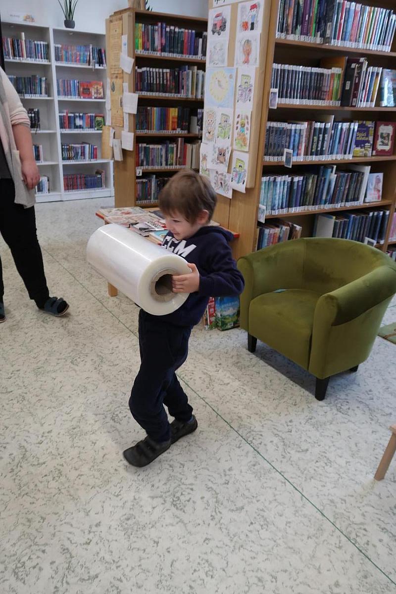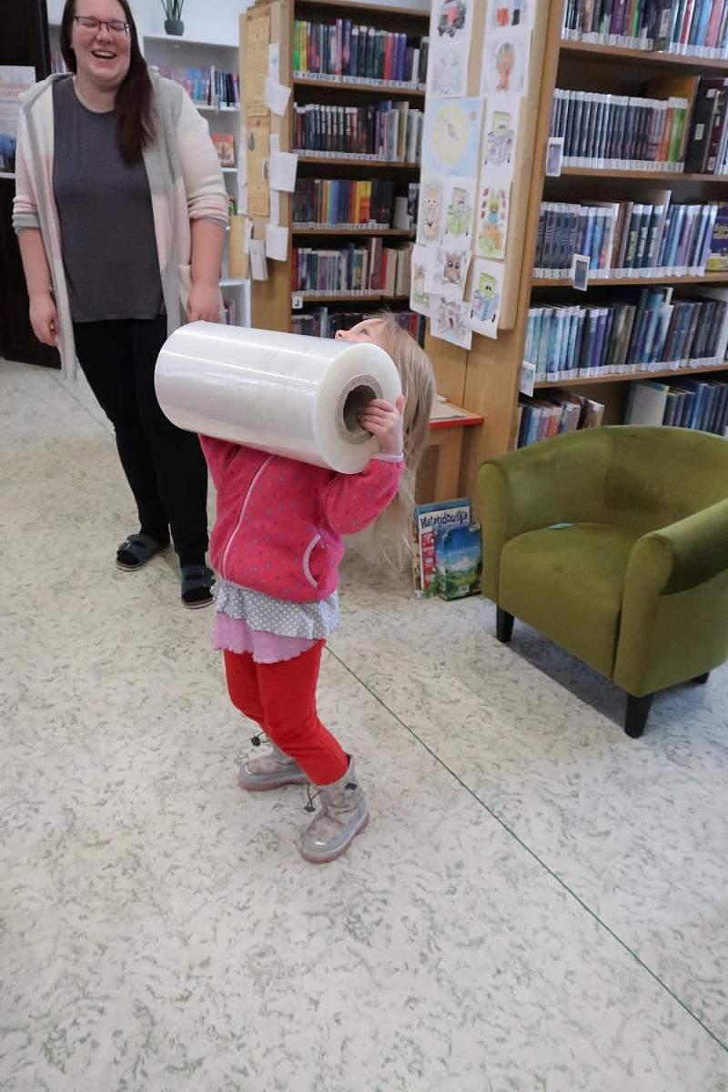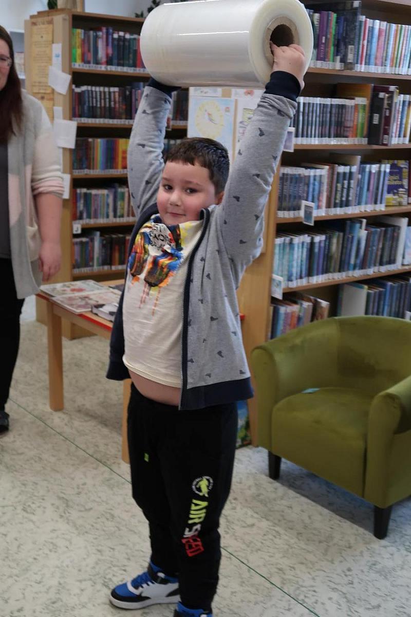 Děti si také připomněly, jak se o knížky správně starat, aby nám vydržely co nejdéle a mohly rozdávat radost dalším čtenářům. Na závěr si všichni vyzkoušeli práci knihovníka: zvedli těžkou roli obalovací fólie a každý si načetl svou knížku pomocí scanneru. Pro mnohé to byl úplně první kontakt s knihovnou.
