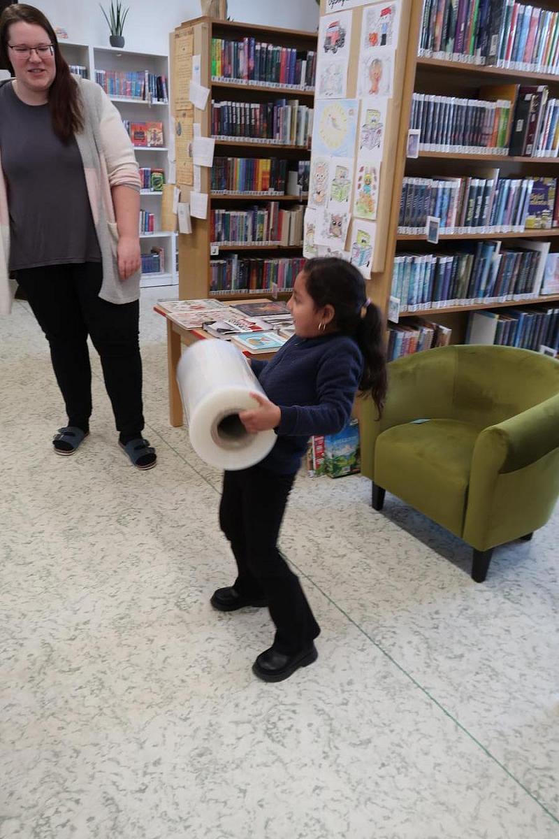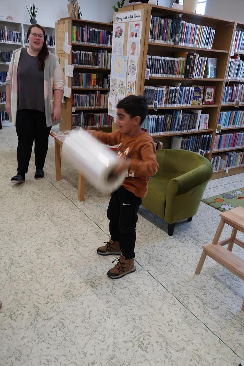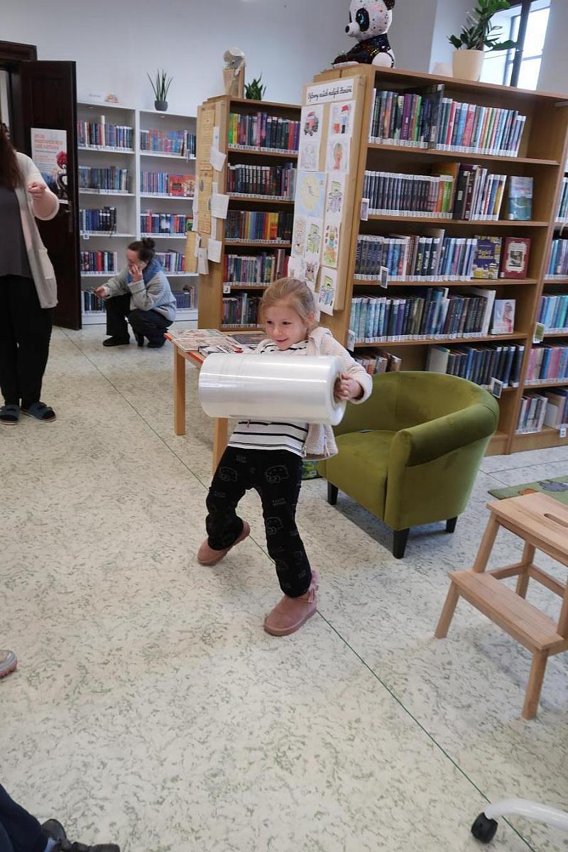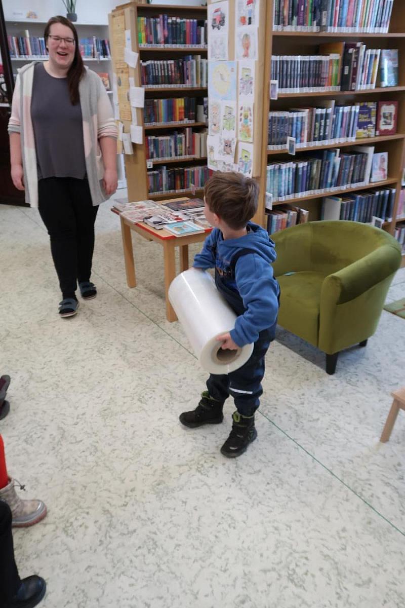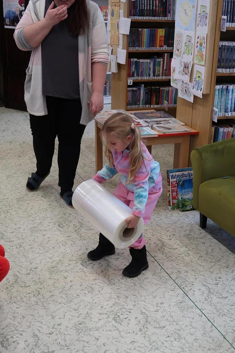 Děti si také připomněly, jak se o knížky správně starat, aby nám vydržely co nejdéle a mohly rozdávat radost dalším čtenářům. Na závěr si všichni vyzkoušeli práci knihovníka: zvedli těžkou roli obalovací fólie a každý si načetl svou knížku pomocí scanneru. Pro mnohé to byl úplně první kontakt s knihovnou.