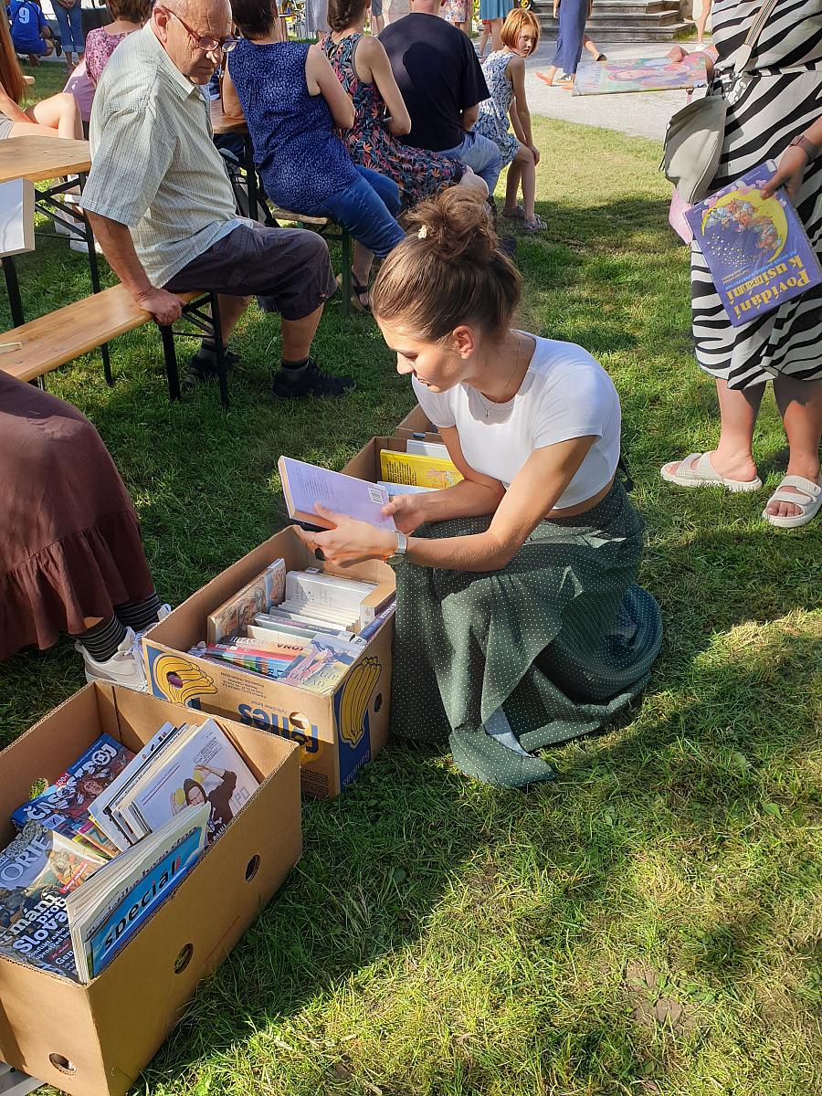 S velikou radostí jsme se v sobotu 20. září zúčastnili báječné a zcela jedinečné komunitní akce Zažít Krumlov jinak. Do velmi nabitého a pestrého kulturně – společensko – sportovního programu jsme přispěli dětským koutkem pro nejmenší děti, „knihokrabicemi“ s vyřazenými knihami a pohádkovým kvízem pro děti a rodiče. K našemu stánku zavítalo přes 90 milých lidí nejrůznějšího věku, což nás velmi potěšilo. Zároveň chceme poděkovat 68 účastníkům akce, kteří věnovali pár minut svého času vyplnění knihovního dotazníku, kterým se snažíme zjistit, čím bychom mohli naše služby a aktivity dále vylepšit, aby byla cesta k nám ještě prošlapanější.